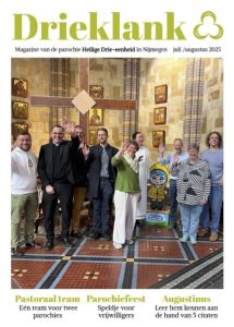 Drieklank is het magazine van de parochie Heilige Drie-eenheid. Het blad verschijnt zes keer per jaar in een oplage van 4000 en wordt bezorgd door vrijwilligers. Wil je het blad ook op de mat? Of wil je Drieklank juist niet meer ontvangen? Geef het door aan het parochiesecretariaat.